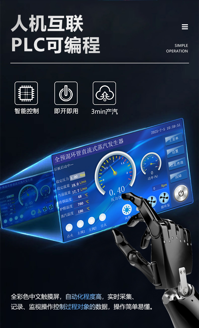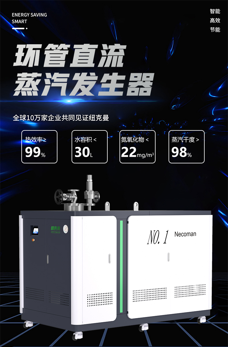 蒸汽量:50kg至6T,無內(nèi)膽,水容積<29L、產(chǎn)汽快、免報檢,低氮燃燒NOx排放<22mg/m3,符合環(huán)保要求,310S不銹鋼過流件直流環(huán)管結(jié)構(gòu),達到衛(wèi)生級別,溫度、壓力、可定制,更多參數(shù)可致電15323300918...