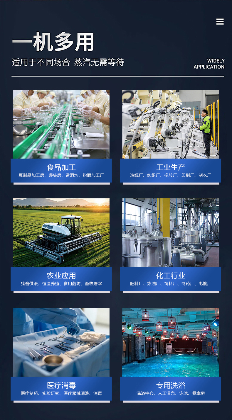 積木式自由組合,按需供氣;蒸汽量:6kg至6T;幾何容積小于30L,無需報檢;獨(dú)特汽水分離器蒸汽干度高達(dá)99%;溫度、壓力、可定制,更多參數(shù)可致電15323300918...